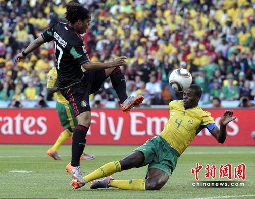 中新網(wǎng)6月11日電 在剛剛結(jié)束的世界杯揭幕戰(zhàn)中,東道主南非隊(duì)迎來了小組賽首個對手、中北美勁旅墨西哥隊(duì),最終經(jīng)過90分鐘鏖戰(zhàn),兩隊(duì)在下半場各自攻入一個精彩進(jìn)球,比賽以1-1結(jié)束。