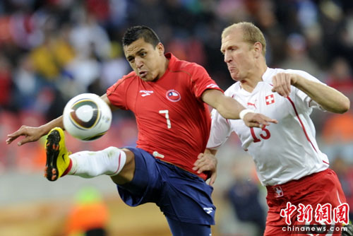 中新網(wǎng)6月21日電 北京時間今晚,世界杯H組第2輪首戰(zhàn)在伊麗莎白港納爾遜-曼德拉灣球場展開較量。瑞士中場貝赫拉米連續(xù)肘擊兩人,被紅牌罰下后,以十人應(yīng)戰(zhàn)的他們在下半場被智利隊岡薩雷斯打入一球,以0-1告負。