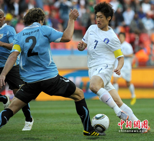 雙方易地再戰(zhàn),韓國隊(duì)加強(qiáng)了進(jìn)攻。李榮杓第50分鐘左路接球連續(xù)過人后橫傳,金再成的射門被擋出。隨后韓國隊(duì)又有一次威脅攻勢,樸周永在無人盯防的條件下射門,皮球高出。第58分鐘,樸智星又有一次頭球攻門,被守門員很舒展的拿到。下半場一段時(shí)間內(nèi),韓國隊(duì)打得相當(dāng)主動(dòng),連續(xù)在烏拉圭門前制造殺機(jī)。