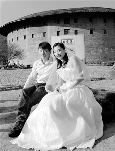 這張疑似婚紗照中,何雯娜身著白色婚紗,而陳一冰上身穿著淺色襯衫,下身的打扮卻很休閑,背景是振成樓。據(jù)何雯娜家人介紹,何雯娜全運會后利用假期回到龍巖,為永定拍了這組宣傳照,這也是何雯娜第二次為土樓做宣傳了!霸谂男麄髡掌陂g,何雯娜換穿了不止一套服裝,白色婚紗是最后一套。”何雯娜母親介紹說,“和陳一冰拍照是在拍攝結束后,并不是婚紗照!