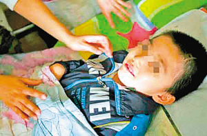“他不能自己坐著,必須有人抱著。”童童的姨婆說,童童的頸部沒力氣支撐頭部,又不能一直把他放在床上躺著,因為躺一陣他就會手腳抽筋,痛得“哇哇”大哭。每當聽到孩子撕心裂肺的哭聲,她也會揪心地痛,為了減少孩子的痛苦,她盡量多地抱著他,走路抱著、吃飯抱著、睡覺也抱著……兩年來,她跟童童的外婆輪流值班,晚上抱著孩子坐在沙發(fā)上睡。