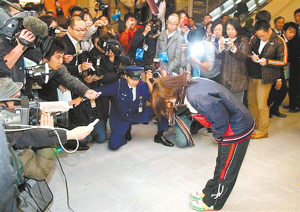 福原愛前晚回國了,日本媒體當(dāng)然不愿意放棄這位當(dāng)紅的話題人物。她剛走出飛機(jī),就有大約60名記者跟著她。來到大廳后,福原愛眼中噙淚,低下頭鞠躬,“沒想到會(huì)造成這么大的騷動(dòng),實(shí)在是對(duì)不起。我還希望自己能夠在乒乓球比賽中有更高的飛躍,所以還會(huì)再努力的! 等出了機(jī)場(chǎng),發(fā)現(xiàn)更多記者后,福原愛也不斷用這句話來回答記者們提出的問題。