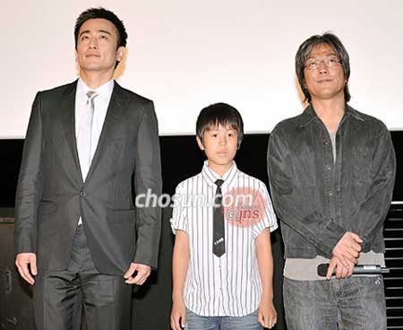 中新網(wǎng)6月6日電 據(jù)《朝鮮日?qǐng)?bào)》報(bào)道,韓國(guó)首部以逃北者為題材的電影《CROSSING》5日在首爾舉行了媒體試映會(huì)暨記者懇談會(huì),主演車仁表、兒童演員申明哲和導(dǎo)演金泰均出席了試映會(huì)。