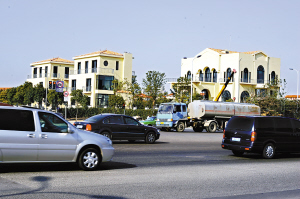 油罐車(chē)等許多大型車(chē)輛從李家豪宅外快速駛過(guò),噪音很大。