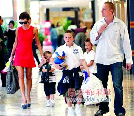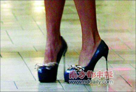 貝克漢姆陪同維多利亞在紐約的Macy商場出席旗下香水新品發(fā)布會,維多利亞穿著的黑色長靴就像褲子一樣長,不過最令人驚奇的是它根本就沒有“鞋跟”,走起路來完全是靠著前腳掌支撐,后腳跟完全是懸在半空中的,因此老公貝克漢姆全程“護(hù)駕”愛妻,惟恐維多利亞不慎摔倒。