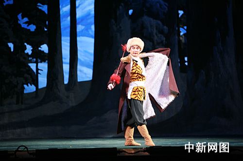 馬翔飛是青年老生演員中的佼佼者,畢業(yè)于中國戲曲學(xué)院,師從曹世嘉、蘇承龍、姚尚英等老師,近年來得到葉鵬、安云武、耿其昌等名師的悉心傳授和提攜。他兼攻“余”派、“楊”派,基礎(chǔ)扎實,扮相俊美,嗓音寬厚,身段瀟灑漂亮,曾榮獲全國京劇青年團隊匯演“個人表演獎”,全國京劇青年演員電視大獎賽“優(yōu)秀表演獎”。與傳統(tǒng)戲相比,這出戲的舞蹈性很強,要求演員邊唱邊舞,而且舞蹈與京劇傳統(tǒng)的戲程式化舞蹈區(qū)別很大;劇中,楊子榮的唱腔非常重,從頭至尾都很高昂,要求演員有一個很好的嗓子;此外,與傳統(tǒng)戲不同的是,劇中人物的表演要更加貼近生活。雖然馬翔飛已從藝20多年,但一直以京劇傳統(tǒng)戲的表演為主,《智取威虎山》是他第一次演現(xiàn)代戲。