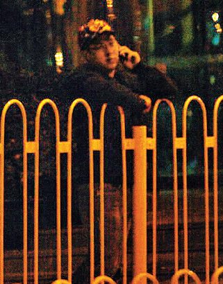 由KTV跑出馬路的霍啟剛,靠著欄桿講電話。