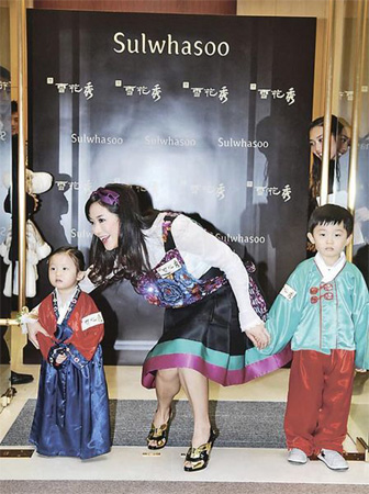 懷有3個多月身孕的子淇照穿高跟鞋,又屈身親近小孩,似乎忘記孕婦的傳統(tǒng)禁忌。香港《明報(bào)》圖