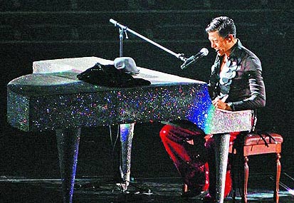 此外,他還苦練2個月鋼琴,展現(xiàn)動靜皆宜的誠意,他說:“我每天半夜洗完澡后練琴,是拚命記下來的!钡巴沓鯊棥度砜凇窌r,因太緊張頻出錯,他說:“后面彈不好,干脆重來好了!睕]想到他重彈了5遍,最后說:“彈鋼琴好難喔!你們以為我是周杰倫啊!”流露可愛一面。但他的國語隨緊張變得更不輪轉(zhuǎn),他苦笑:“我好緊張!國語一直打‘折’。”當(dāng)場被歌迷糾正是打“結(jié)”,他說:“我又回到18年前,我錯了!