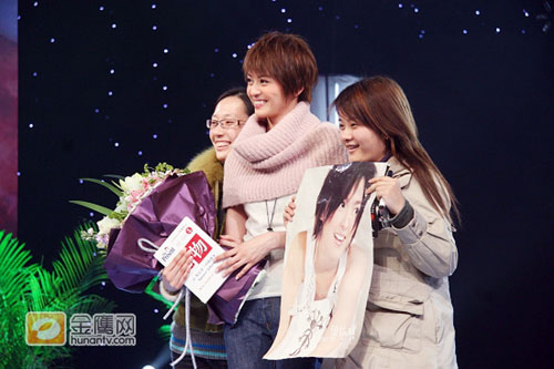 梁詠琪當場與黑龍江遠道而來的粉絲合影。