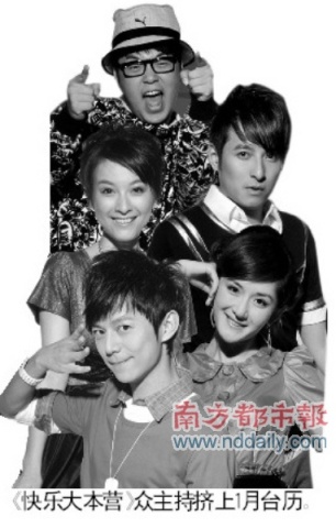 《快樂(lè)大本營(yíng)》眾主持?jǐn)D上1月臺(tái)歷。