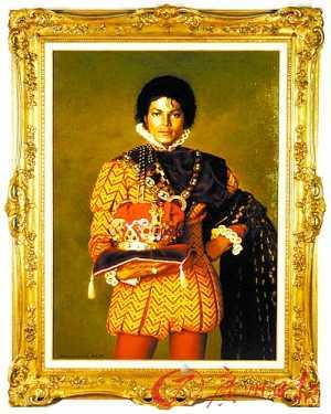 拍賣物品中有不少都像是一個國王的行頭。有一幅杰克遜的肖像油畫,他打扮得像個國王,創(chuàng)作于1995年,鑲嵌精致的金色畫框。市場估價在4000~6000美元。一件紅色的天鵝絨斗篷,帶著奢華的白貂皮領、金色的飾帶、金色十字勛章,估價雖然只有300~500美元,但讓人不由想起國王加冕儀式中的裝束。還有一個皇冠形胸針,不過鑲嵌的都是人造寶石,估價只有80~120美元。