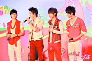 對于4人何時才會合作拍攝一部偶像劇或電影的問題,一向被拿來和當年F4比較的飛輪海表示:“之前看了韓國重拍的《流星花園》,感覺蠻受啟發(fā)的,如果有合適的劇本和角色我們也希望嘗試!庇杏浾邌査麄兪欠裨敢饨优摹读餍腔▓@》的續(xù)集,4人表示“并無不可”。