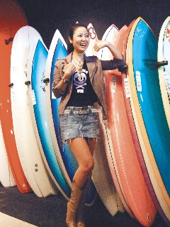雖然無浪可沖,店里的器材可是從沖浪板到防寒衣一應俱全,只不過前來友情贊助、完全不會沖浪的林心如卻抱怨地說:“怎么沒有比基尼可以挑?”
