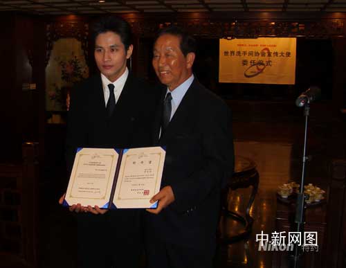 副會(huì)李曉林表示:很榮幸邀請到韓國著名歌星, “全民舞王”—— 劉承俊先生擔(dān)當(dāng)“2008年國際宣傳大使”。在宣讀了“2008國際宣傳大使”職責(zé)和義務(wù)后,邀請劉承俊先生共同簽署委任書。李曉林還說:第二屆世界“洗手間”協(xié)會(huì)總體大會(huì)將于明年在我國召開。計(jì)劃成陸續(xù)向中國農(nóng)村廣大鄉(xiāng)村、城鎮(zhèn)等地區(qū),投入具有世界級(jí)標(biāo)準(zhǔn)的洗手間設(shè)施和文化保潔用品。
