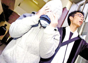 郭鎮(zhèn)瑋為躲避鏡頭穿得相當(dāng)嚴實。