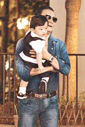 一向視孫兒為心肝寶貝的四哥,期間獨自抱孫下樓往附近逛公園,下月2日便足一歲的Lucas,樣子愈大愈像父母及爺爺,頭發(fā)長得非常濃密,全程在爺爺懷中更精乖沒有鬧別扭,當四哥與他說話時,雖不懂回應亦笑著望爺爺,逗得四哥很開心。四哥抱住Lucas四周逛,見人就狂贊乖孫很可愛。