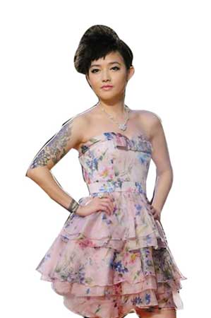 ★陶子:超低胸的造型,不得不用一朵超大的裝飾花來遮遮掩掩,讓人看著都提心吊膽。