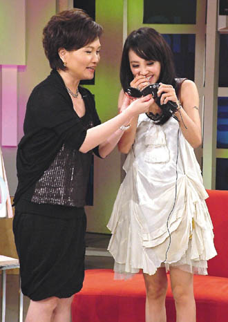 蔡依林(右)上電視節(jié)目談到感情世界。