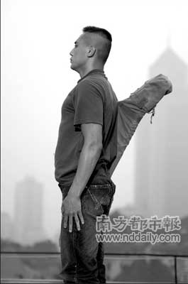 在電影里,他出演的“老三”是一位阿甘式的退伍軍人,因為大腦缺氧而出現(xiàn)智力障礙,在一次見義勇為受到表揚之后,他發(fā)現(xiàn)了擊倒壞人的快樂,于是他練就了強壯的肌肉,并苦練凌厲的技擊術。在兩分多鐘的預告片中,劉燁一直在打人,戲里他的偶像是岳飛,他的武器是“紅纓槍”,他閑時不是唱軍歌就是唱國歌,總是“夢想用拳頭改變世界”。