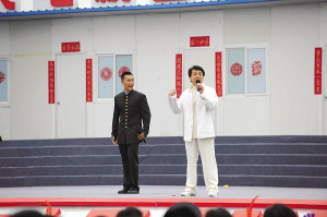 昨日早上8點(diǎn)半,“心連心”演出主會場的演出在綿竹最大的救災(zāi)板房安置區(qū)舉行。據(jù)悉,所有的演員昨天5點(diǎn)鐘起床化妝,再從德陽駐地趕到演出現(xiàn)場。而他們當(dāng)中的成龍前晚半夜12點(diǎn)才趕到四川;正在香港進(jìn)修CEO的趙本山更是專門趕回來。即使半夜到德陽,也要專門趕到綿竹現(xiàn)場彩排。前天下午,在“心連心”位于綿竹市二號立交橋板房區(qū)的主會場,里里外外圍滿了前來觀看的鄉(xiāng)親。在板房搭建起來的簡易舞臺上,演員們正在彩排。開場曲是央視24位主持人與4位歌手合唱的《三百六十五個祝!。