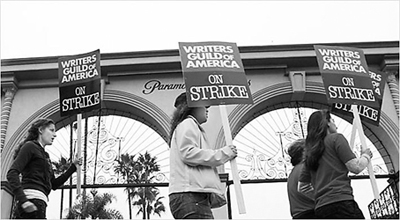 連續(xù)3個(gè)月的談判失敗后,美國(guó)編劇同業(yè)工會(huì)于美國(guó)西部時(shí)間今天上午9時(shí)起發(fā)起了總罷工。據(jù)估計(jì)洛杉磯和紐約兩地超過(guò)12000名編劇走上街頭示威游行,尤以美國(guó)娛樂(lè)業(yè)中心洛杉磯聲勢(shì)最為浩大。