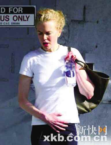 妮可當(dāng)日穿上她最愛的運(yùn)動套裝,與教練進(jìn)行緩步跑,期間她還聽老公KeithUrban、MaryJ.Blige、BonJovi 及Culture Club 等的歌曲進(jìn)行胎教。跑了一會兒,妮可已滿頭大汗,于是她隨手掀起外套和T恤,讓肚皮暴露出來散散熱。