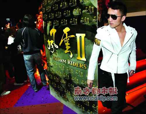 謝霆鋒當(dāng)天一件白色皮夾克亮相,照例戴著墨鏡,但在接受采訪時(shí)取下了眼鏡。他一臉笑容,似乎未受“艷照門”一事影響。他說:“聽到那件事(指艷照門一事)時(shí),我和我太太正坐車去看戲,聽到收音機(jī)里說,才知道這件事已經(jīng)鬧得那么大了!彼谡勗捴胁⒉槐芗蓮埌刂サ脑掝},記者問他拍動(dòng)作戲難度時(shí),他主動(dòng)提到柏芝:“我和我太太8年前拍第一部戲《老夫子》的時(shí)候就試過吊威亞了!