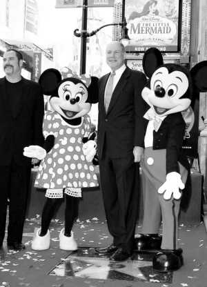日前,迪斯尼前主席邁克爾·埃斯納留名好萊塢星光大道。在授星儀式上,迪斯尼的經(jīng)典動(dòng)畫人物米老鼠前來助陣,為典禮增添了不少活潑歡快的氣氛。