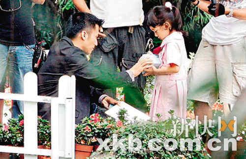 謝霆鋒和張靜初前日到香港公園為英皇電影《證人》秘密開工拍攝。前日拍攝的是小妹妹把畫板交給負傷的霆鋒的戲份,霆鋒則要將手上的食物盒交給小妹妹。與張柏芝育有一子的霆鋒,經(jīng)常被追問會否再為人父,前日在片場所見,他與小女孩演對手戲時分外細心,儼如慈父般與對方拍戲。鏡頭后亦不時逗小妹妹玩樂,小妹妹亦顯得相當(dāng)高興。可能天氣酷熱加上小演員演出經(jīng)驗不多,難免出現(xiàn)NG情況,但霆鋒亦愿意耐心教導(dǎo),又不時與她聊天,與小演員相處十分融洽。