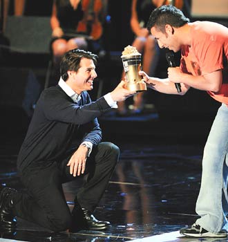 美國MTV電影獎(jiǎng)揭曉 阿湯哥為桑德勒跪頒大獎(jiǎng)(圖)