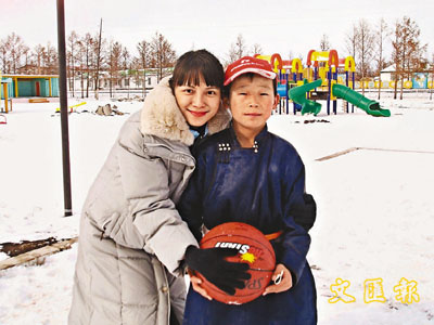 李心潔遠赴蒙古探訪 贈助養(yǎng)兒子籃球與其合影(圖)