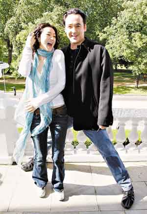 一身休閑裝扮的鞏俐(左)顯得優(yōu)雅又有活力,開(kāi)懷大笑的她在約翰·庫(kù)薩克身邊可謂風(fēng)情萬(wàn)種.