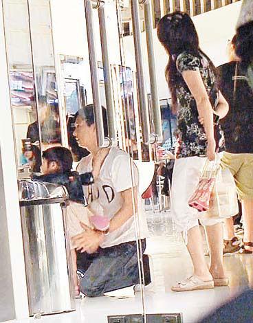 關詠荷張家輝一家三口逛街,抱女兒的責任留給張家輝。