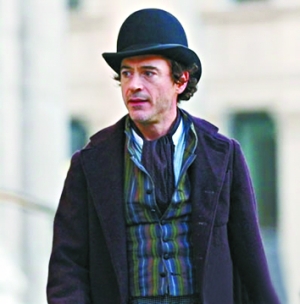 導演蓋·里奇正在倫敦拍攝新版《福爾摩斯》,聚集了兩大性格派演員“鋼鐵俠”小羅伯特·唐尼和裘德·洛,唐尼的“福爾摩斯”造型和裘德·洛的“華生醫(yī)生”造型先后曝光。