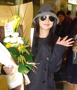 周迅昨日抵達(dá)桃園機(jī)場(chǎng),準(zhǔn)備盛裝出席晚上的《畫(huà)皮》首映。