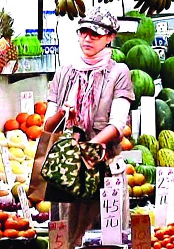 不知道她這身莫名其妙的打扮是否過分“獨(dú)特”,身旁一名女子也不禁打量她,但周海媚不予理會。之后周海媚再到附近一間水果店買櫻桃(右圖),付款后,她邊走邊把櫻桃放進(jìn)手袋內(nèi)離開。