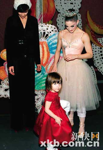 周日,凱蒂·霍爾姆斯帶著打扮似小公主的蘇瑞一起去紐約芭蕾舞團(tuán)觀看劇目《胡桃?jiàn)A子》,并在后臺(tái)和芭蕾舞演員合影留念。