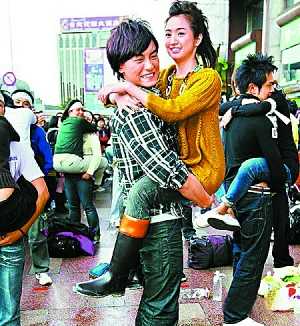林依晨與“小綜”鄭元暢上周日為《我的億萬面包》宣傳,在臺(tái)北車站前重現(xiàn)劇中的“情人擁抱大賽”,兩人還上臺(tái)示范抱抱姿勢(shì)。由于林依晨怕自己太重令小綜抱不起她,故意整天不敢吃東西。問到兩人私下有沒有可能參加這類比賽?林依晨說:“獎(jiǎng)金很吸引,但我較適合參加斗氣比賽!毙【C說:“我較適合參加大胃王比賽吧!”