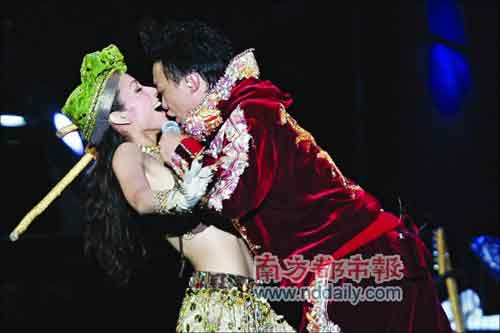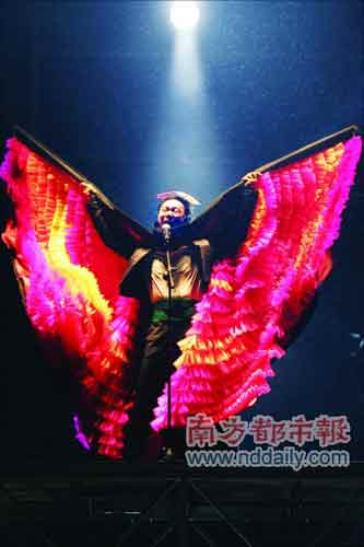 開場后,陳奕迅就唱了一連三首的快歌,下了不少苦心的他不顧地面濕滑,又是倒立又是和性感女舞伴火辣熱舞,引來了歌迷的陣陣尖叫。而整場演唱會的第一個(gè)高潮,是陳奕迅穿上華麗詭異的蝙蝠裝站在高臺上唱出《浮夸》時(shí),立即獲得全場高呼鼓掌。而之后出場所帶的印度舞和“千手觀音”,都讓觀眾大呼過癮,不斷制造人浪以示回敬。
