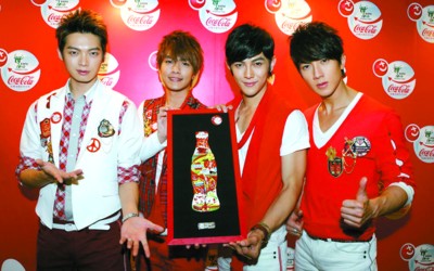 人氣組合飛輪海昨日現(xiàn)身北京,參與2010年世博會倒數(shù)一周年“點(diǎn)滴改變,創(chuàng)造城市新精彩”活動(dòng),除分享環(huán)保的理念外,更首度公開演唱了可口可樂推出的首支世博主題新歌《歡樂節(jié)拍123》。