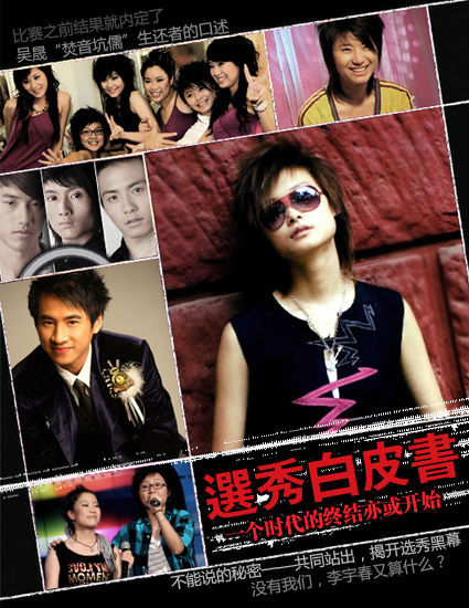 桑雪作為中國第一個奧運冠軍并轉(zhuǎn)型歌手,出雜志后,也成為媒體焦點,說明大眾對于奧運事件的熱衷程度。相反,對于中國第一本盤點娛樂圈年度大事件的《選秀白皮書》,文章中近年來娛樂圈領(lǐng)軍人物李宇春、張靚穎等都列入其中,反而在明星出版銷量中排名最后,充分說明,大眾對于選秀事件的疲憊與麻木,大眾的眼睛需要綠色的屏障作保護,人們需要的是新鮮的事物來刺激生活。