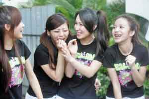 5月5日,黑澀會(huì)美眉與黑人來(lái)到廣州體院拍攝外景,參觀大學(xué)里四個(gè)各具特色的社團(tuán)——雙截棍、舞獅、武術(shù)及戲曲團(tuán)。俗話說(shuō),三個(gè)女人一臺(tái)戲,這8妞妞湊在一起,雖然馬不停蹄地趕通告,同樣不影響她們旺盛的精力及古靈精怪的個(gè)性,全程不斷大笑、嘰嘰喳喳,閑聊一刻不停歇,有時(shí)還需要工作人員提醒才乖乖地收口,談?wù)摰脑掝}更是包羅萬(wàn)象,從蚊子咬的包到路人很瘦的腿,都能引起她們強(qiáng)烈驚嘆。