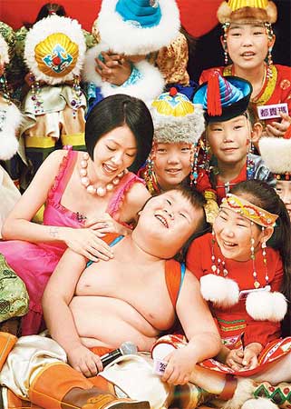 中新網(wǎng)7月23日電 內(nèi)蒙古五彩呼倫貝爾兒童合唱團昨天錄制臺灣綜藝節(jié)目《康熙來了》,小朋友塞爆攝影棚,并和節(jié)目主持人小S玩得不亦樂乎。