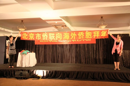 16日晚,北京市僑聯(lián)藝術(shù)團的藝術(shù)家們早早就進入演出現(xiàn)場,進行演出前的準備工作,晚7點鐘,演出正式開始。在2個小時的演出中,藝術(shù)家們?yōu)楫數(shù)?00多名僑胞奉獻了一場精彩紛呈的視覺盛宴,獨唱、舞蹈、相聲、變臉、魔術(shù)等豐富多彩的藝術(shù)形式讓在場的觀眾大飽眼福,掌聲連連。
