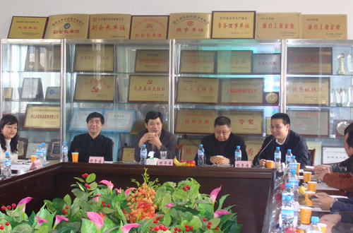 中新網(wǎng)4月27日電 據(jù)湖州市僑聯(lián)消息,近日,浙江省湖州市僑聯(lián)、市僑商會(huì)在長興召開“僑資企業(yè)轉(zhuǎn)變經(jīng)濟(jì)發(fā)展方式現(xiàn)場交流會(huì)”,并實(shí)地參觀考察努奧羅(中國)有限公司、浙江多蒙佳樂服飾有限公司等兩家僑商會(huì)會(huì)員企業(yè)。長興縣縣長章根明、副縣長吳頻、湖州市僑聯(lián)主席孫虎林、副主席黃永南出席會(huì)議,二十余家重點(diǎn)僑資企業(yè)代表與會(huì)。