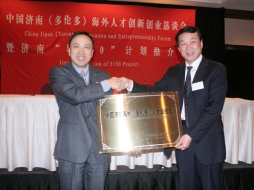 經濟南僑辦多次聯(lián)絡協(xié)調,在前期交流考察基礎上,濟南市政府分別與在當?shù)赜杏绊、有實力、在僑界聯(lián)絡廣泛的美國華源科技協(xié)會、中國旅美科技協(xié)會、加拿大專業(yè)人士協(xié)會三家華僑華人科技社團,簽約設立濟南(硅谷)、濟南(紐約)、濟南(多倫多)三處人才引進聯(lián)絡處,殷魯謙為聯(lián)絡處授牌,為美加海外高層次人才到濟南創(chuàng)新創(chuàng)業(yè)搭建新的交流合作平臺。