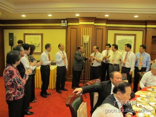 中新網(wǎng)5月10日電 據(jù)廣東僑網(wǎng)消息,5月7日晚,廣東省僑辦主任吳銳成、副主任黎靜在北京京西賓館設(shè)宴歡迎參加第五屆世界華僑華人社團(tuán)聯(lián)誼大會的部分僑領(lǐng)。