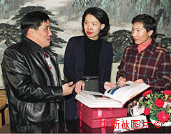今年四十五歲的北京殘疾人周志武(左),近日將自己和愛人親自攝影、印放并制作的五十本《今日北京》攝影集,交予國務院港澳辦澳門司的負責人,委托轉交澳門殘聯(lián)。