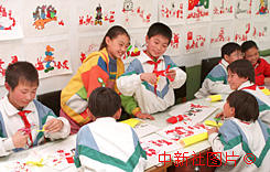 錦州市小學(xué)生制作剪紙送澳門小朋友